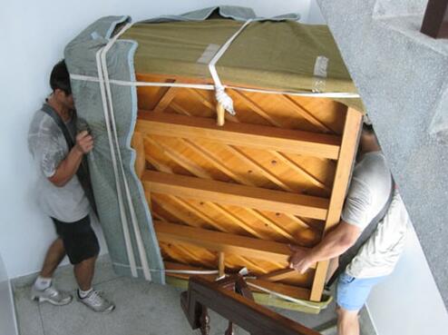 ④搬運鋼琴上車后應站立擺放,保持鋼琴受力的均勻性,同時,師傅還會對鋼琴作出全方位的保護,鋪墊搬家特制絨布,減少琴和車的摩擦,在邊邊角角的地方采用泡沫膠封箱。